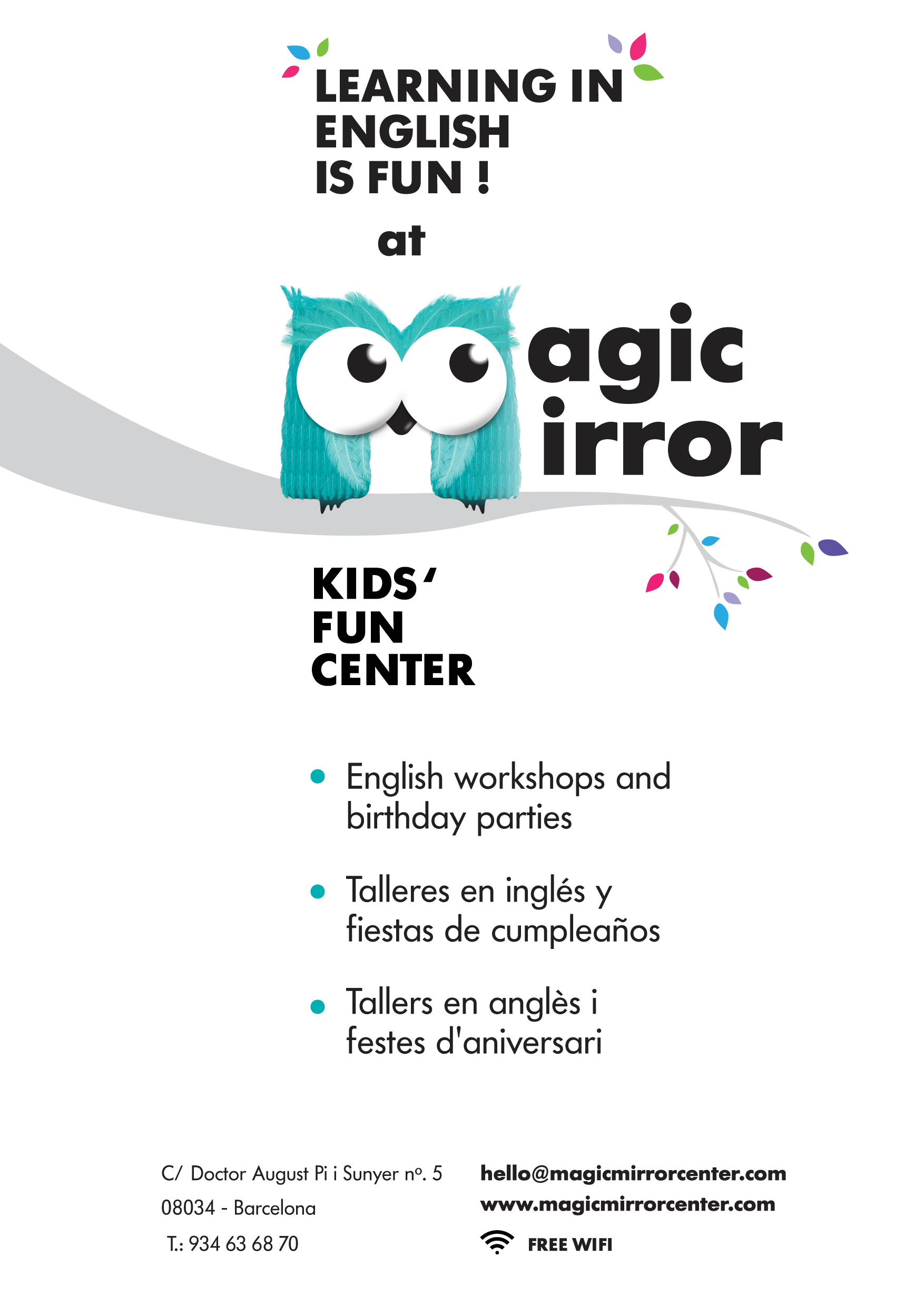 A més, Magic Mirror també proposa activitats per pares/ mares i bebés en un ambient acollidor i és un espai ideal per celebrar les teves festes d’aniversari.