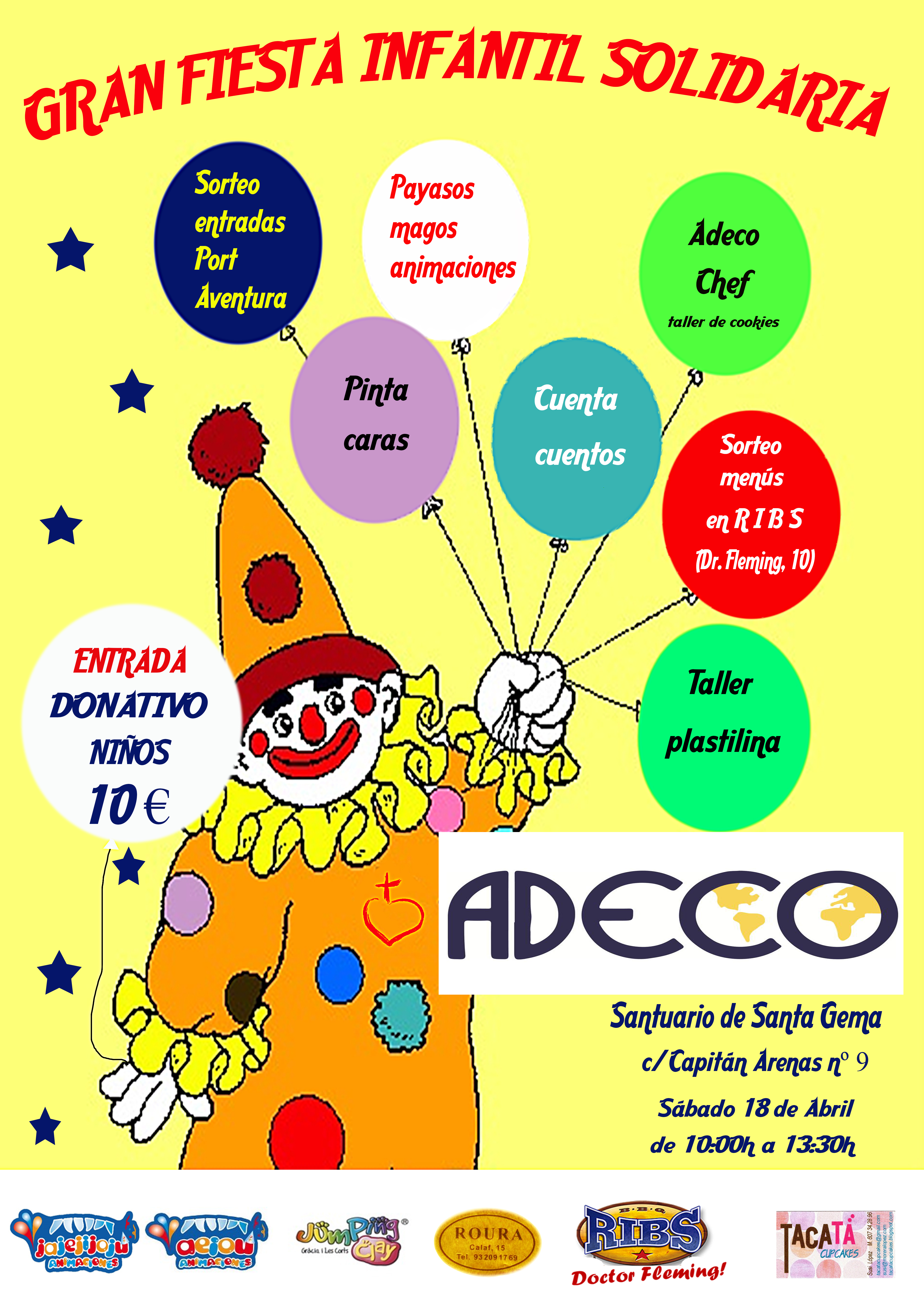 Ajudar a qui més ho necessita i gaudir amb els més petits d’una jornada familiar amb pallassos, mags, animacions infantils, taller de cokies, pinta cares, contacontes, taller de plastilina i sorteig de menús a RIBS, entrades a Port Aventura!!!